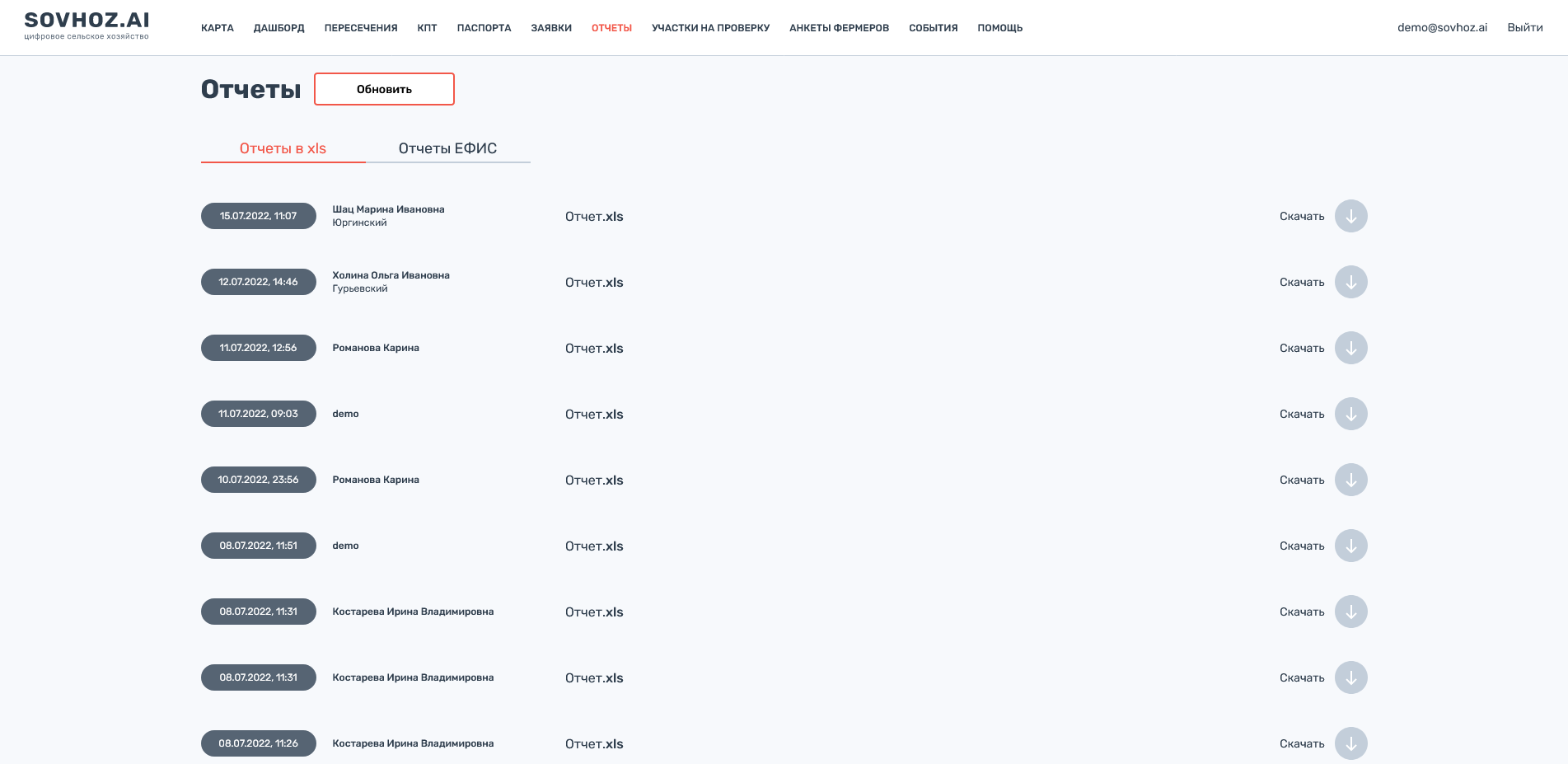 Реализована функционал получения отчетов для мониторинга земель, выявления нарушений, составления статистики по землям сельхозназначения.