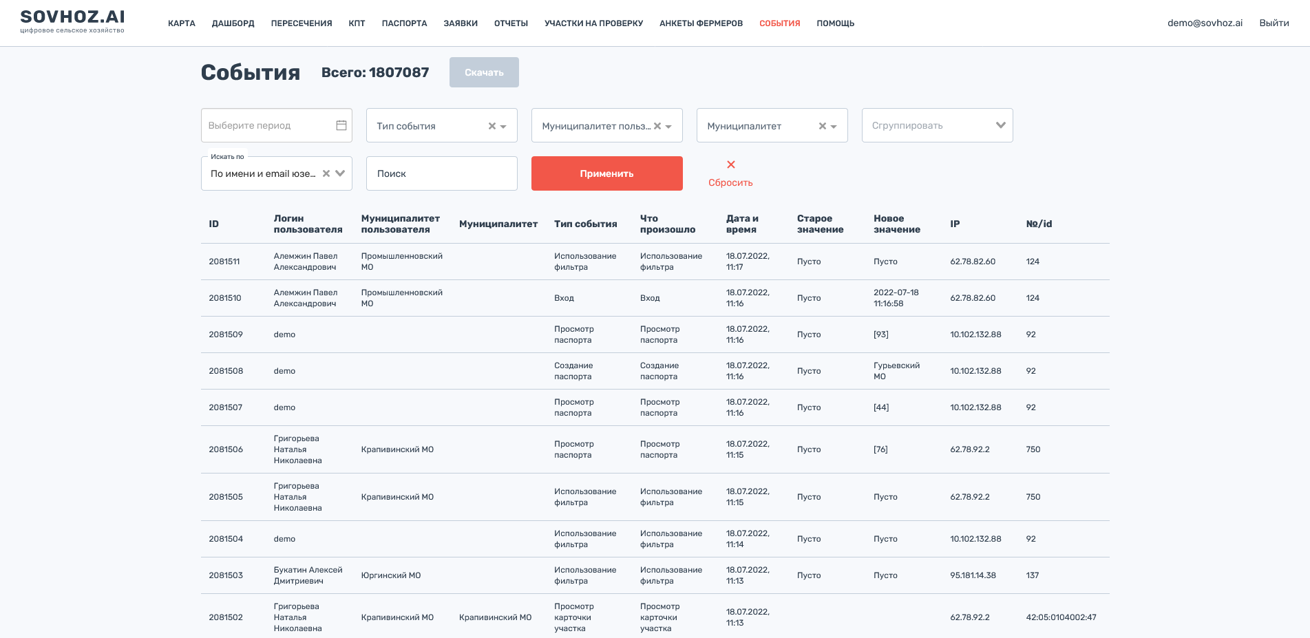Разработан модуль создания цифровых паспортов сельскохозяйственных угодий, что позволяет получать точную информацию по землям муниципалитетов, проверить достоверность данных в паспорте и хранить историю паспортов в цифровом виде.